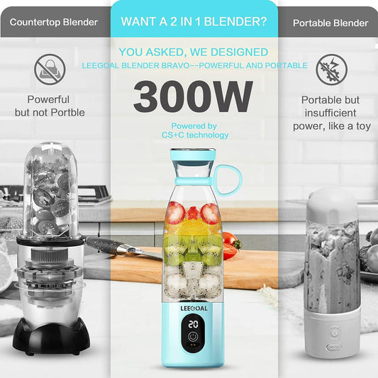 Smoothie Maker, 18OZ/535ML Portable Smoothie Blender Juicer Mixer, 300W Powerful Personal Blender | Crushes Ice Cubes| 3X MORE POWERFUL than Most USB Blenders, Blender Bravo Blue